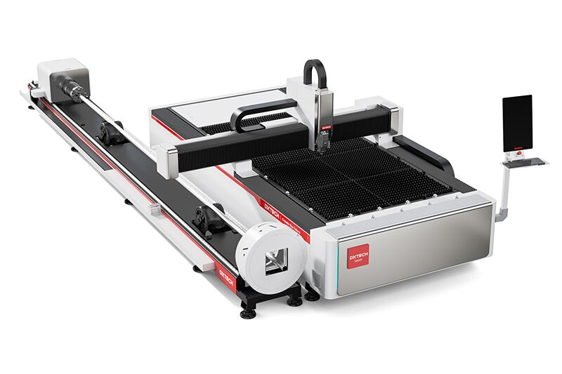 This metal sheet and tube fiber laser cutter is the best choice for processing complex metal pieces. It can not only process metal sheets with fast speed and good accuracy, but also process metal tubes and make precise cuts. DXTECH equips this metal sheet and tube laser cutter with world-class components, such as Raycus/Max laser source, Japan Yaskawa/Fuji servo motor, Taiwan HIWIN/PMI guide rail, France Schneider electronic components, etc. The working size and laser power can be customized according to the customer needs. This machine has wide applications in the auto parts, robot parts, rocket parts, aircraft parts, ship parts, household appliance parts, metal tools, engineering machinery parts, agricultural machinery parts, metal decoration, metal furniture, kitchen countertop, kitchenware, fitness equipment industries.
