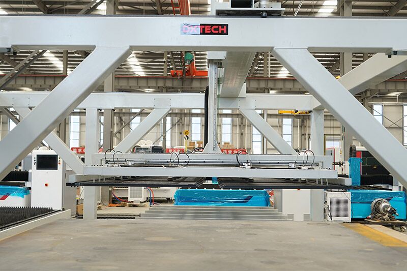 Features high/low-level double sorting tables with a 4-ton stacking capacity for cut plates. This design streamlines post-cut material handling and optimizes workshop space utilization.