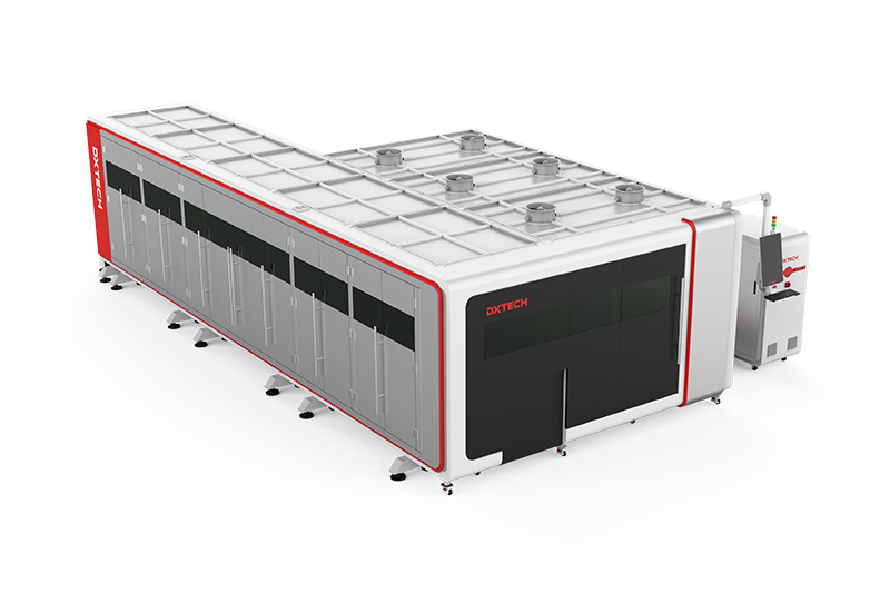 DXTECH 6kw all cover fiber laser cutting machine with exchange table adopts a fully enclosed cutting space, which can effectively isolate laser radiation and smoke, protect the health of operators and the environment, and also ensure the consistency and perfection of cutting quality.