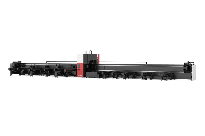 TMTP12520 High Power 20000W Bevel Tube Laser Cutting Machine can accurately cut all kinds of complex shapes on carbon steel, stainless steel, aluminum and other non-ferrous metal tubes. Can process pipe weight ≤ 2000kg, round pipe diameter range 120-520mm, pipe length up to 12000mm; support channel steel, angle steel, I-beam and other profiles cutting; widely used in fitness equipment, oil pipeline, automotive and other industries.